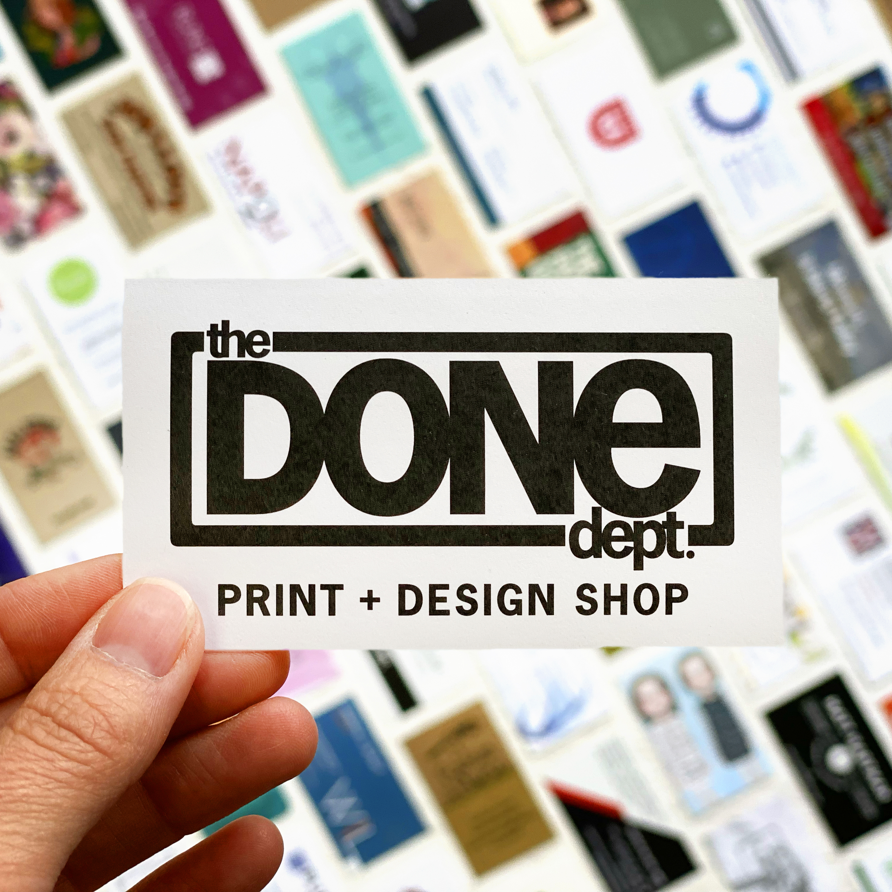 If you've been here for years, or if you are new to The Done Department, we are SO happy to help you out! We hope that your experience with our friendly, creative and knowledgeable staff is nothing but the best. We LOVE printing business cards, so please, take advantage of our promo this month!